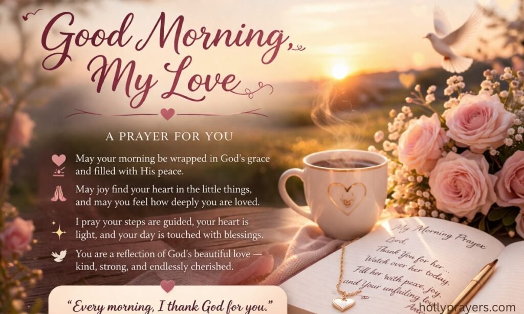 Your love deserves to feel special every single morning. A heartfelt prayer for her shows that you trust God with her life and happiness. It is one of the most romantic and meaningful things you can do for the woman you love.